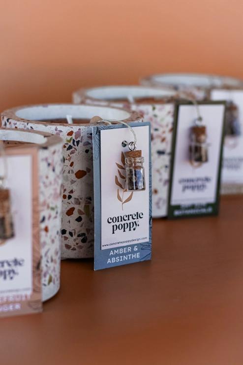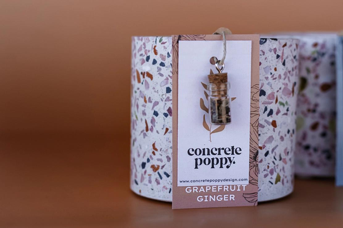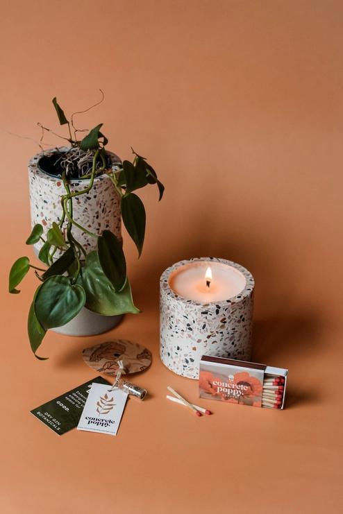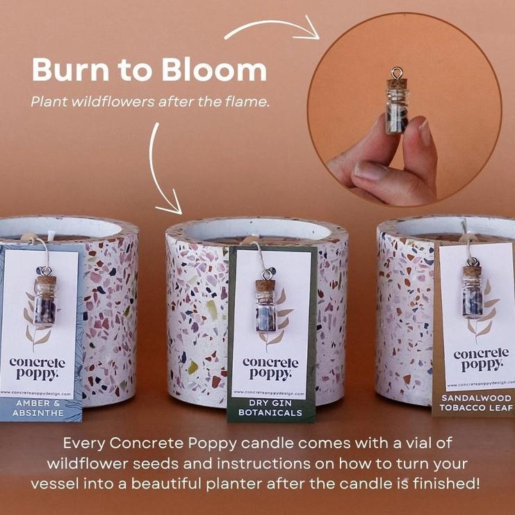 These 6 oz Concrete Poppy Candles are thoughtfully handcrafted in Denver with the intention of creating beauty that lasts well beyond the final burn. Each candle is poured into a modern, reusable concrete vessel and designed with a unique burn-to-bloom purpose—once the candle is finished, its life is just beginning.