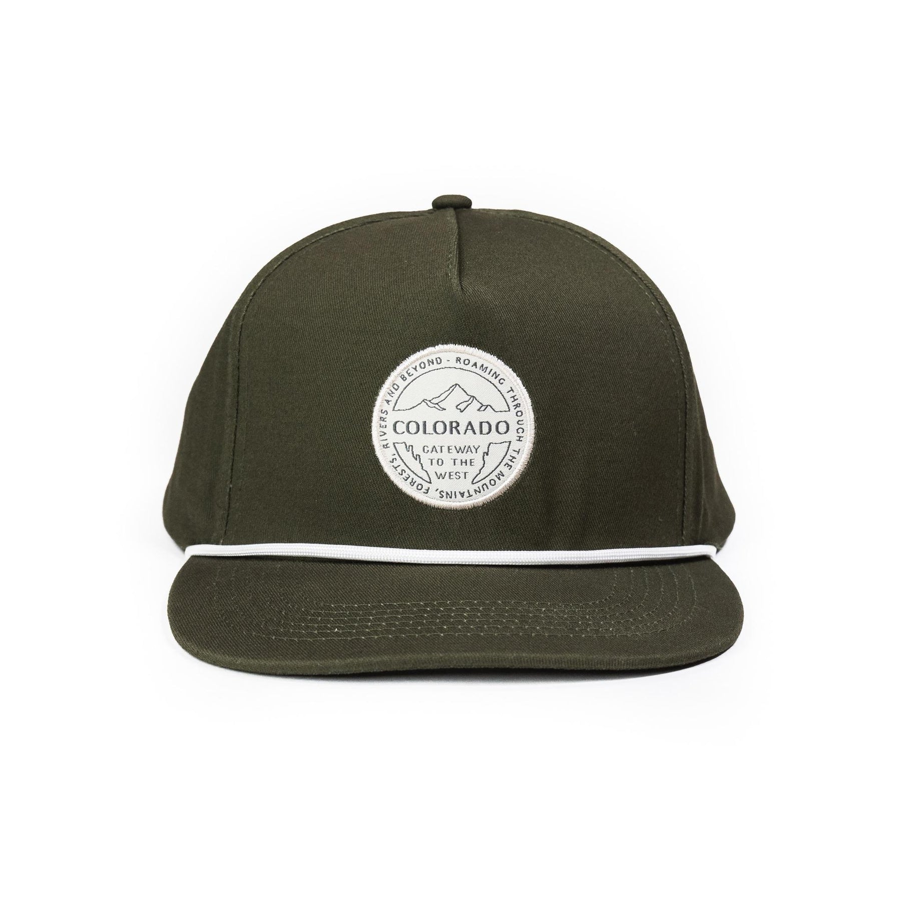 Front: 2-Inch Woven Patch – Off White, Grey Green, Off White Rope