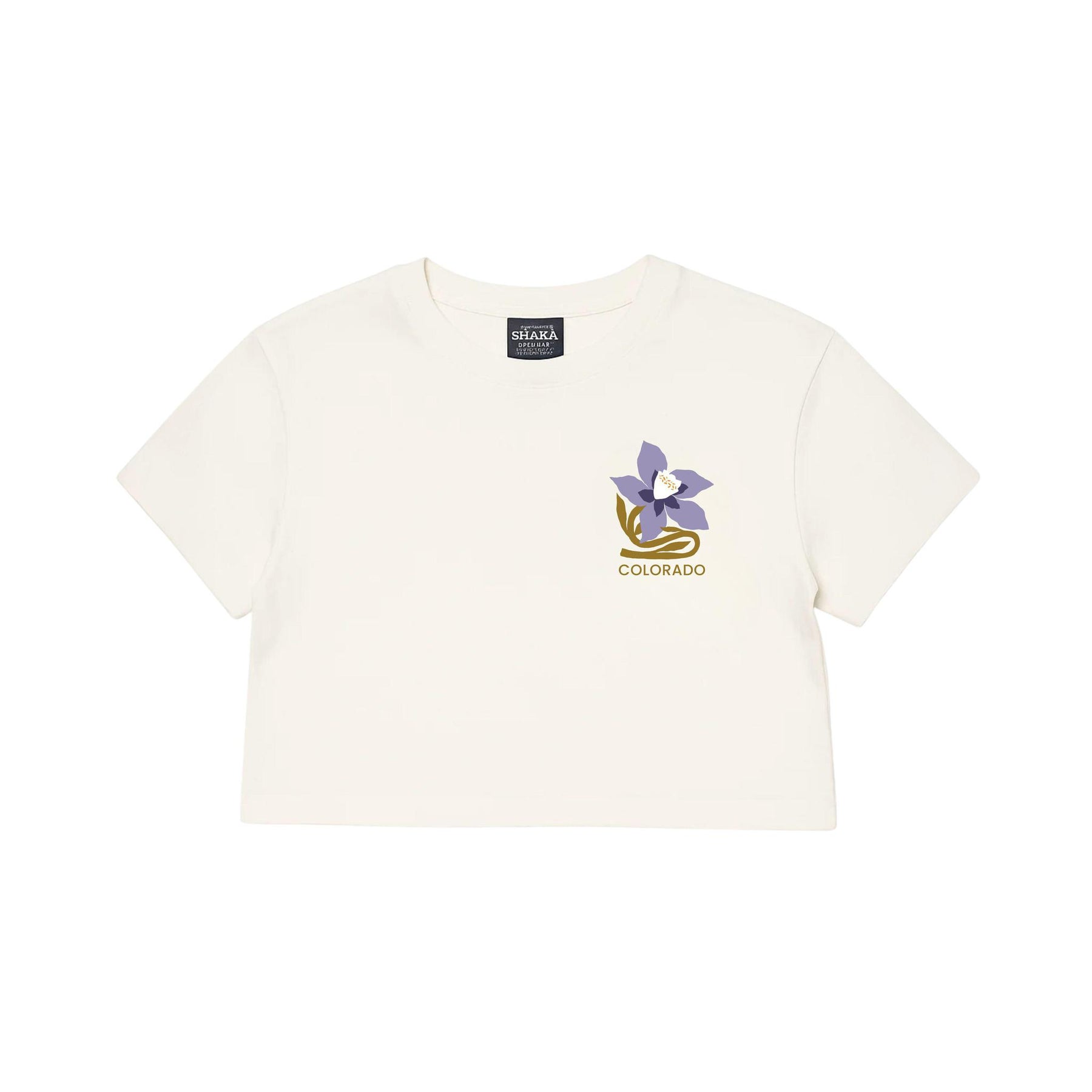 This artwork is printed on a cream Shakaware crop top and is printed locally in Silverthorne, Colorado.